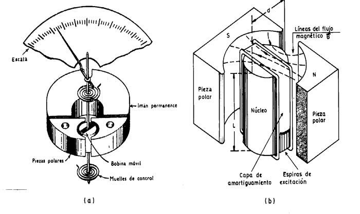 Los instrumentos de imán permanente y bobina móvil (I.P.B.M.), conocidos también como tipo d’Arsonval, son los más usados en medidas de corriente continua, como voltímetros y amperímetros; se caracterizan por ser fácilmente transportables, su calibración es casi permanente y su uso es sencillo. Su principio de funcionamiento se basa en la interacción de dos campos magnéticos : el del imán permanente y el producido por una corriente que recorre una bobina móvil.