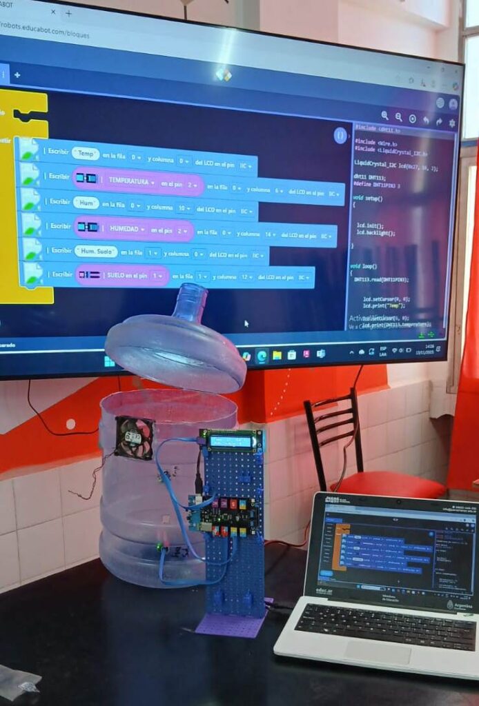 A través de programación por bloques y controladores electrónicos, los estudiantes lograron diseñar un prototipo funcional capaz de gestionar de manera autónoma las condiciones necesarias para el desarrollo de plantas en espacios reducidos.