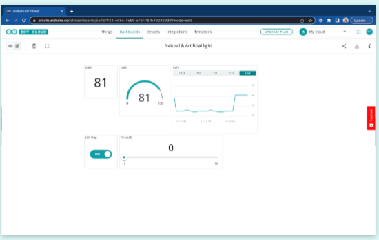 El botón de abajo te redirigirá a la página de luz natural y artificial en la plataforma Arduino Cloud. Una vez allí, haz clic en «Usar plantilla» , sigue los pasos para cargar automáticamente el código, configura el panel de control en la nube y comienza a leer los valores.