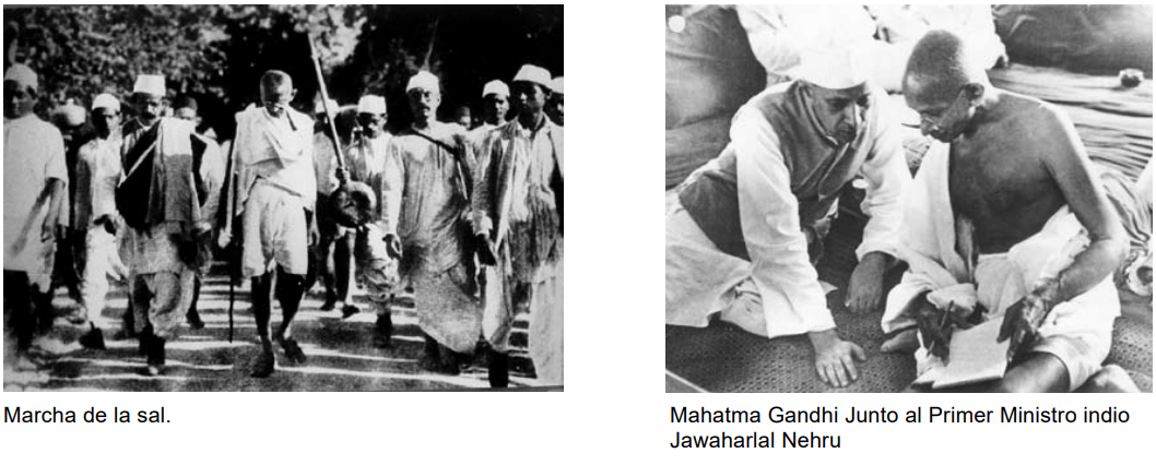 En 1930, Gandhi, junto a un grupo de estudiantes, organizó la Marcha de la sal, recorriendo a pie 390 kilómetros, hasta llegar a las orillas del océano Indico, para obtener de sus aguas un puñado de sal. Con esa protesta pacífica, rechazaron el monopolio de la sal y los impuestos que mantenían las autoridades británicas sobre un producto esencial.