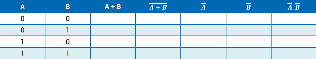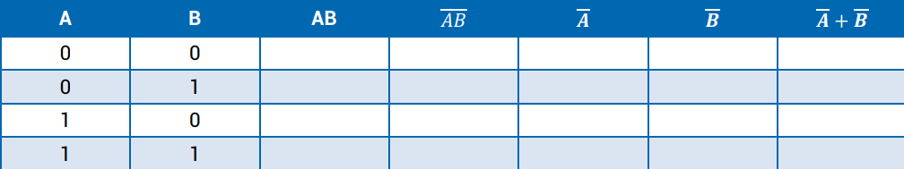 Verificar mediante las tablas de verdad de las compuertas las leyes de De Morgan: